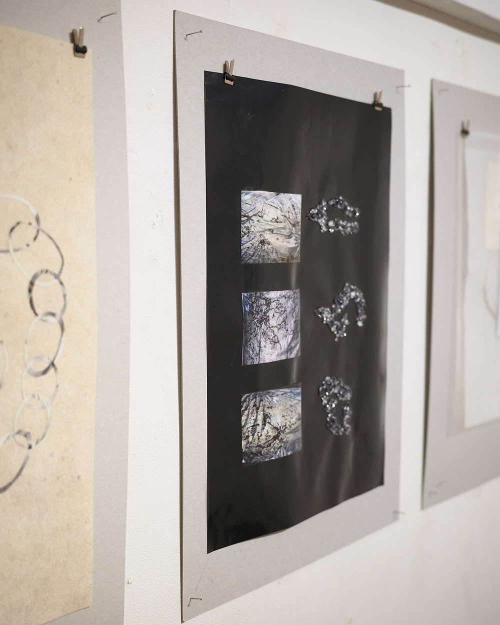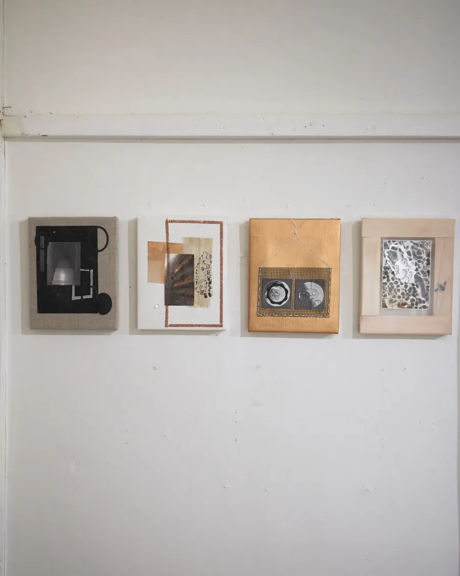 Kanako Ikegaya's collage works were born from being attracted to traces of continuous movement as non-verbal communication and the habits of bees that spin new phenomena while transforming space in order to mediate pollen. Various materials including glass, graphite, and ceramics are composed without separating their respective differences as they sit adjacent to each other.