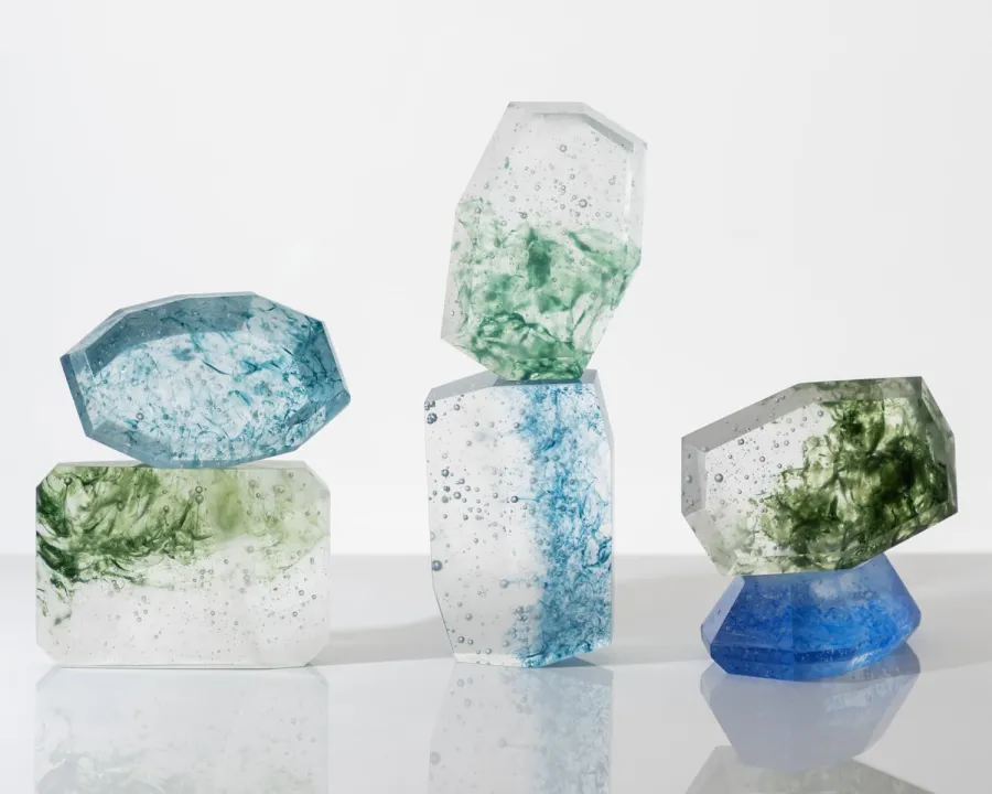 まるで光を掬いあげるように輝く新作のCAIRNオブジェやピアス、水をまとい水面とは異なる様相を帯び独自のテクスチャが目を惹くIN WATERコレクション。 どれもひとつとして同じ象はなく、それぞれが異なる色や重なりと響き合いながら 偶然と必然のあわいにたゆたっています。 素材に宿る記憶を映しだすGleicheniaの作品は、身につけ空間にしつらえることで、 新たな風景を描きだしています。