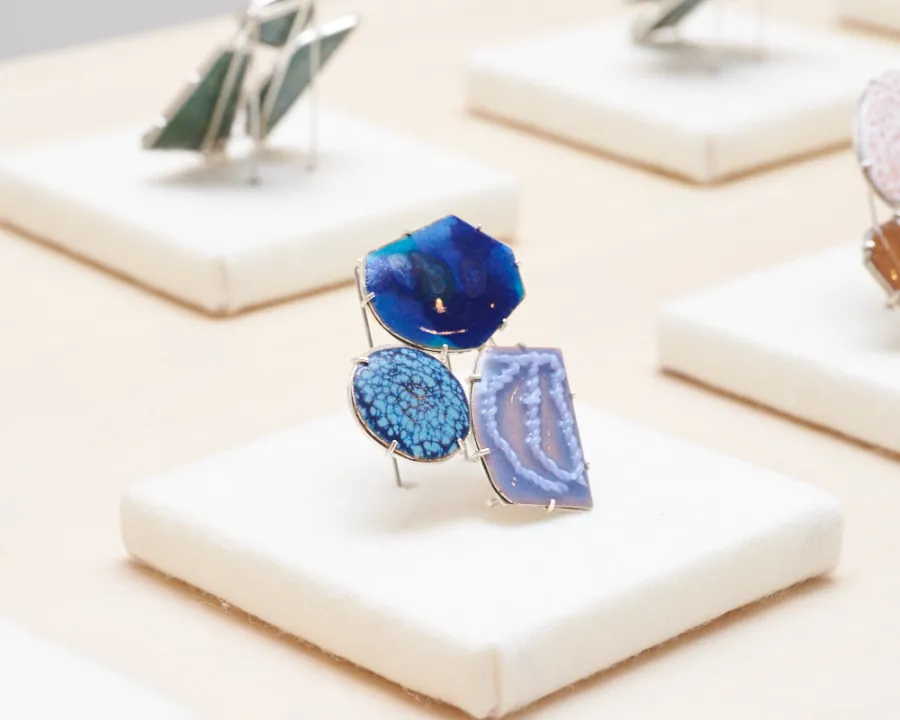 壁にかけて鑑賞するペインティング作品を、より身体的に感じられるようにとの思いからうまれた七宝を用いたブローチ『ECHO』をはじめ、ドローイング作品『Untitled』シリーズやガラスのオブジェ『CONTOUR』シリーズなど3つの要素からなる今回の展示は、異なるメディウムが連接し、空間に新たな響きが重なりあうことへと想いを馳せています。ぜひご高覧ください。