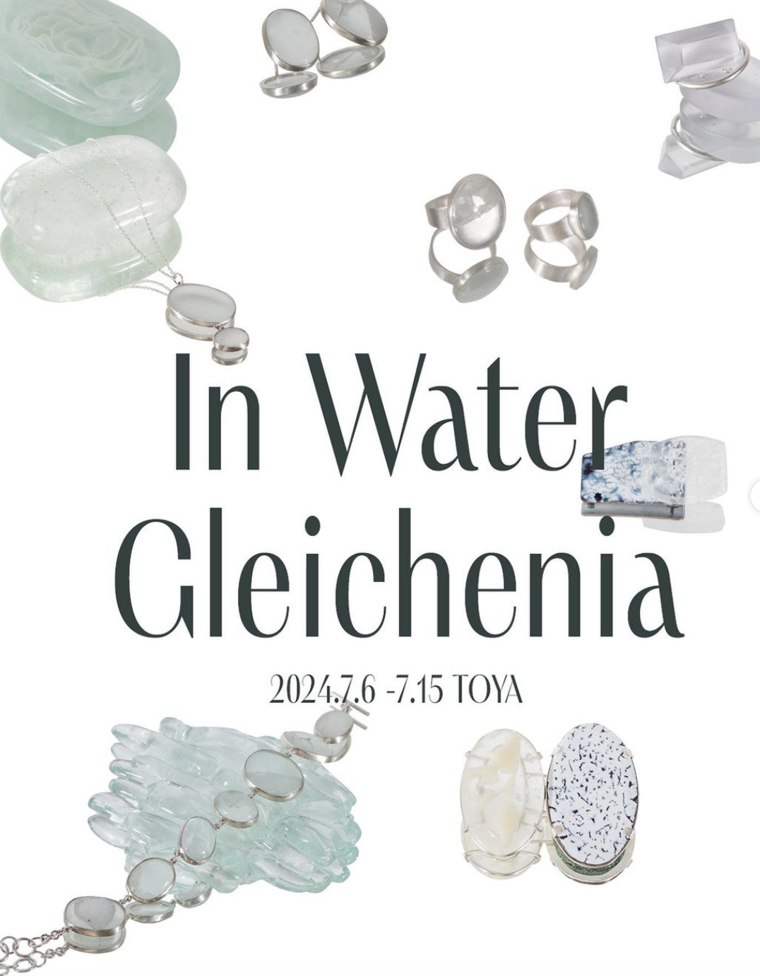この度 Gleichenia は、新作INWATER コレクション、SCENERY FRAME コレクションを発表いたします。古代ローマ時代、羊の脂と灰が浸透した土が、雨に流され川に堆積したものが石鹸のはじまりといわれています。また、ガラスは長い年月を経て水の中で形成された砂粒と植物の灰が溶融し、固化することから生じたといわれている素材です。本作は、偶然がもたらした2つの物質の共通点を見出したことからうまれました。水面にゆらめく泡肌の連なりのようなテクスチャが印象的なリングやペンダントからなるINWATERコレクション、水の様相を風景として借景に見立てた七宝とシルバー構造のSCENERY FLAMEブローチなど水を想起するようなジュエリーやオブジェ、コラージュ作品を発表いたします。ぜひこの機会にご高覧ください。