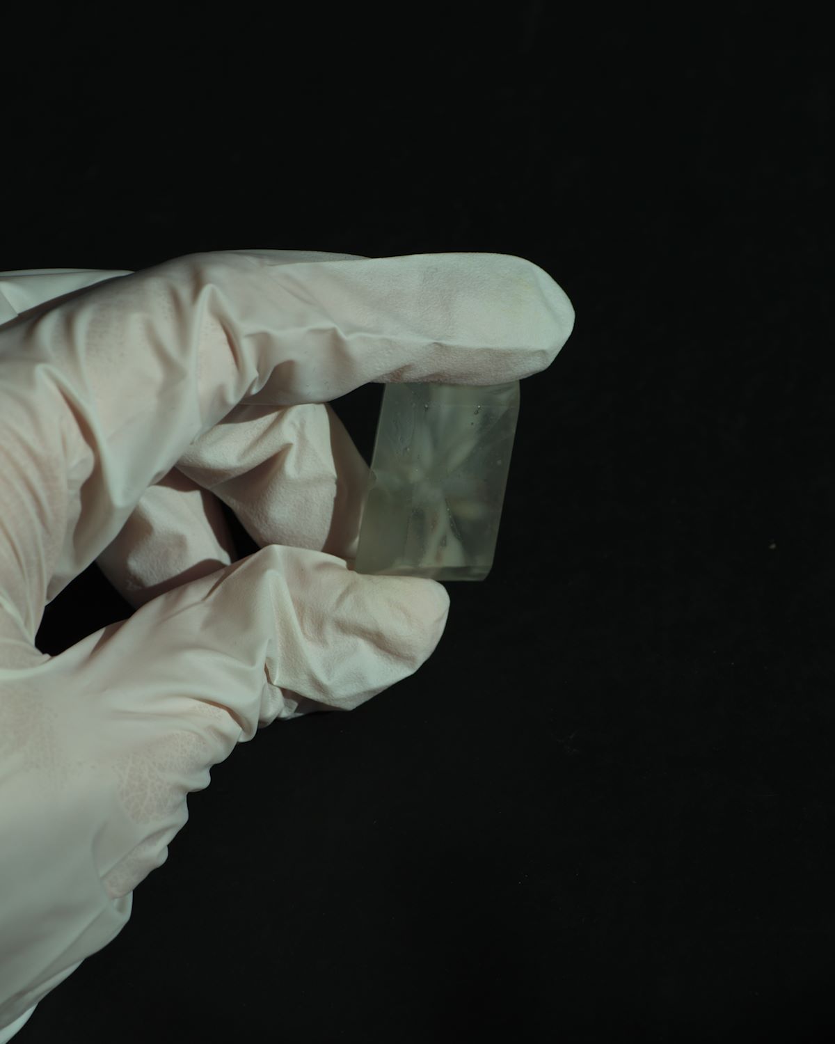 Gleicheniaのガラスモティーフは、色の調合から溶融、削り出し、研磨に至るすべてのプロセスをひとつひとつ手仕事で制作しています。炉の温度や時間を調整し、ガラスの特性による微細な泡粒や渦状のテクスチャを活かすようデザインとカットを施しています。